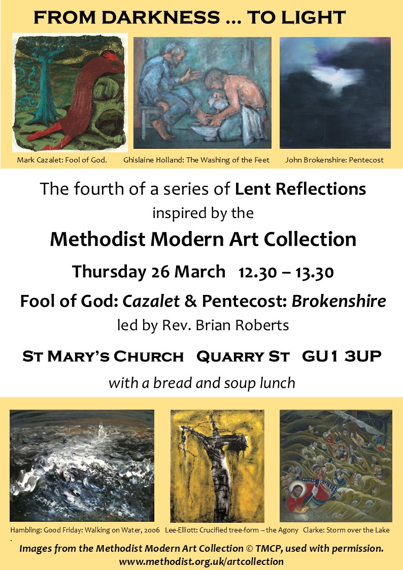 - introducing Mark Cazalet's Fool of God and John Brokenshire's Untitled - Pentecost led by Brian Roberts, followed by a bread and soup lunch